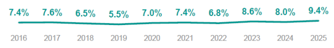 11.8% of U.S. adults used a GLP-1 medication in 2025 to lose weight or treat chronic conditions like diabetes or heart disease, while 14% reported interest in starting treatment.
